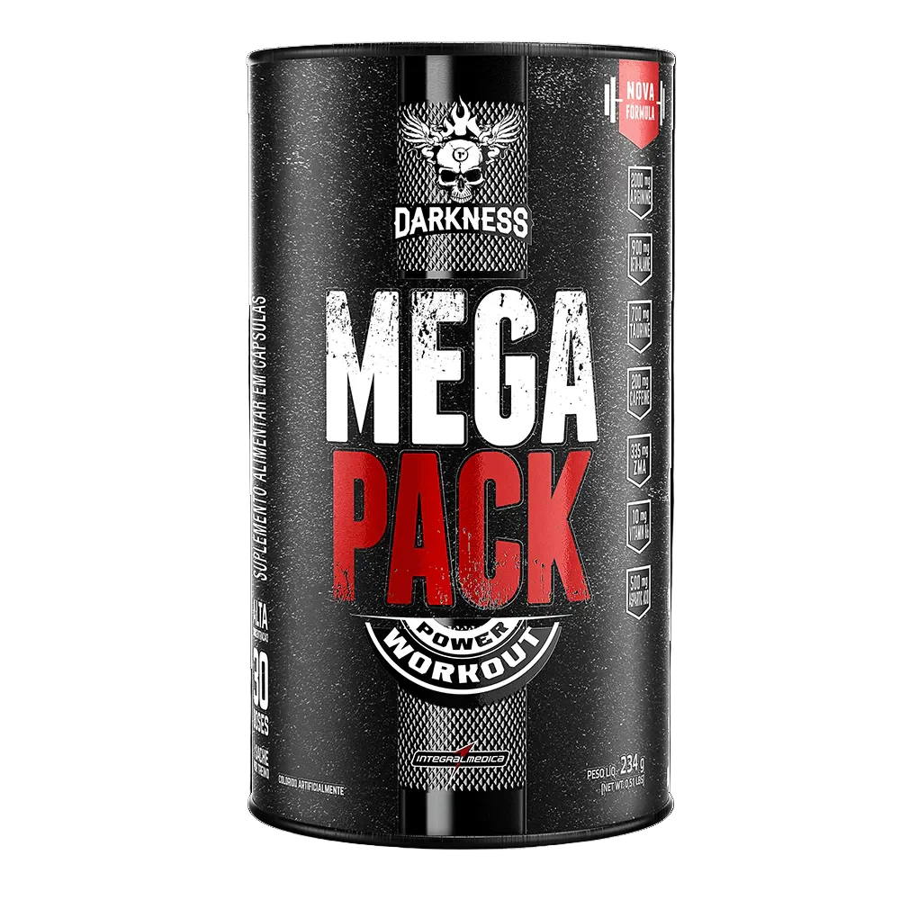 Mega Pack Power Workout Darkness é um estimulador de testosterona que promove a redução da fadiga para otimizar o esforço nos treinos, fornece energia explosiva para máximo aproveitamento e vasodilatação para acelerar a hipertrofia.
